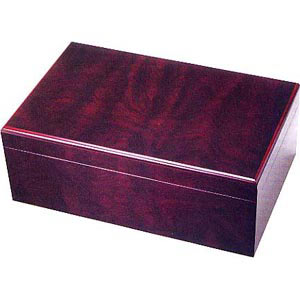 Large, dark red mahogany humidor. Spanish cedar interior with divider, humidifier, and hygrometer. Holds up to 90 cigars.