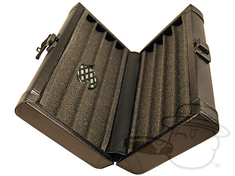 Popular sized, lightweight travel case with a woodlands camouflage design and strong aluminum construction. Includes removable foam inserts and humidification device for those prolonged excursions